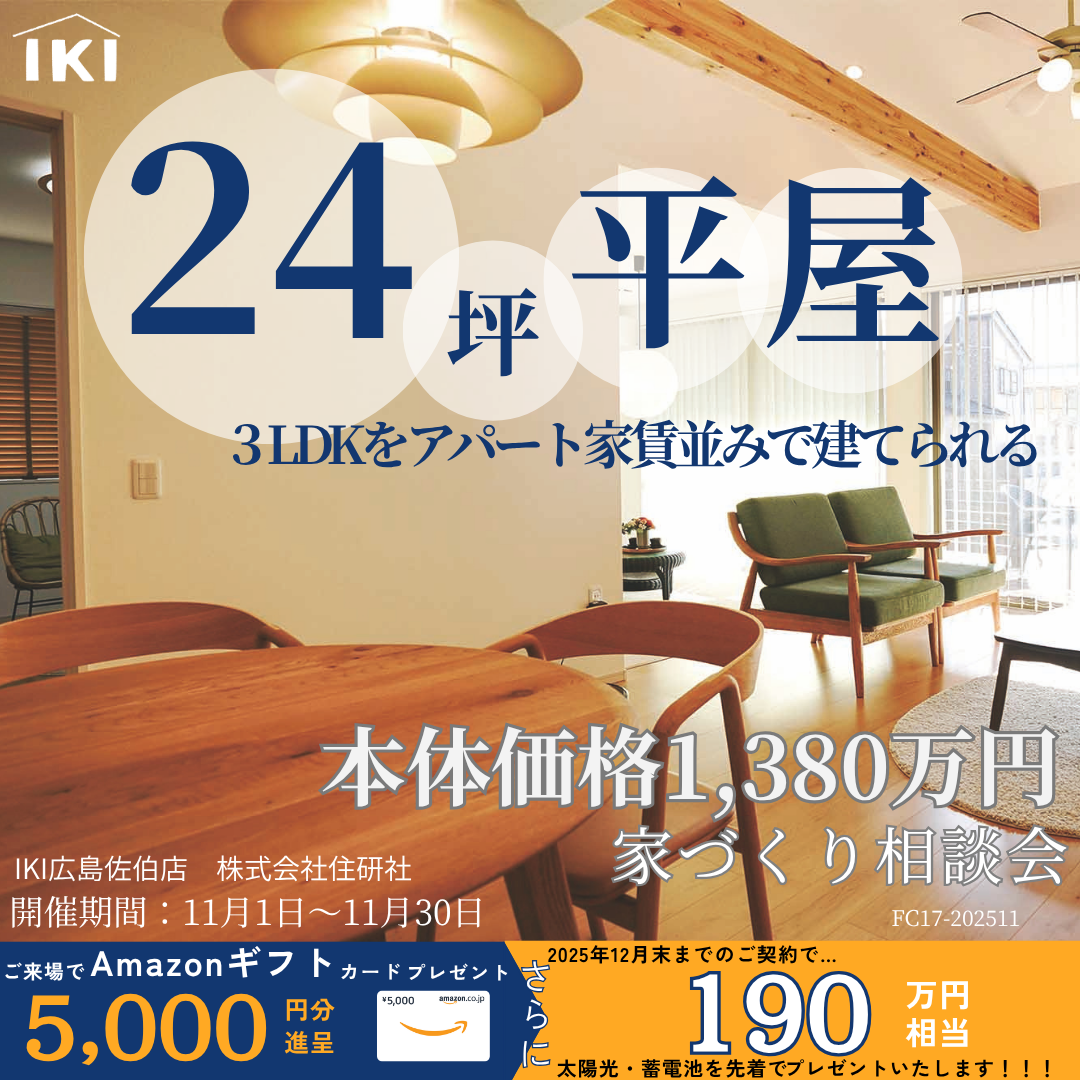 1380万円で建てる!3LDK平屋住宅!