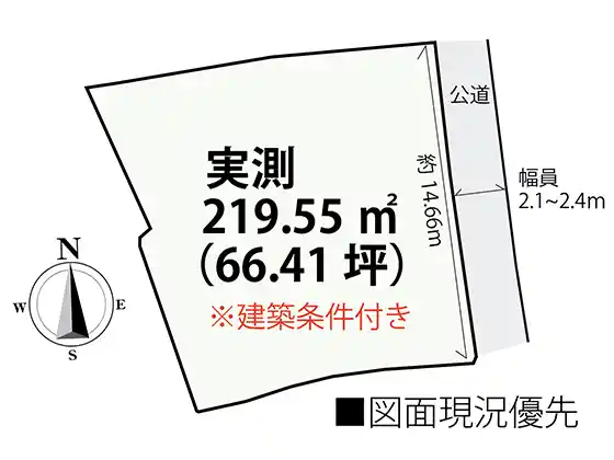 接道状況 公道:東約2.4~2.1m、間口約14.6m
